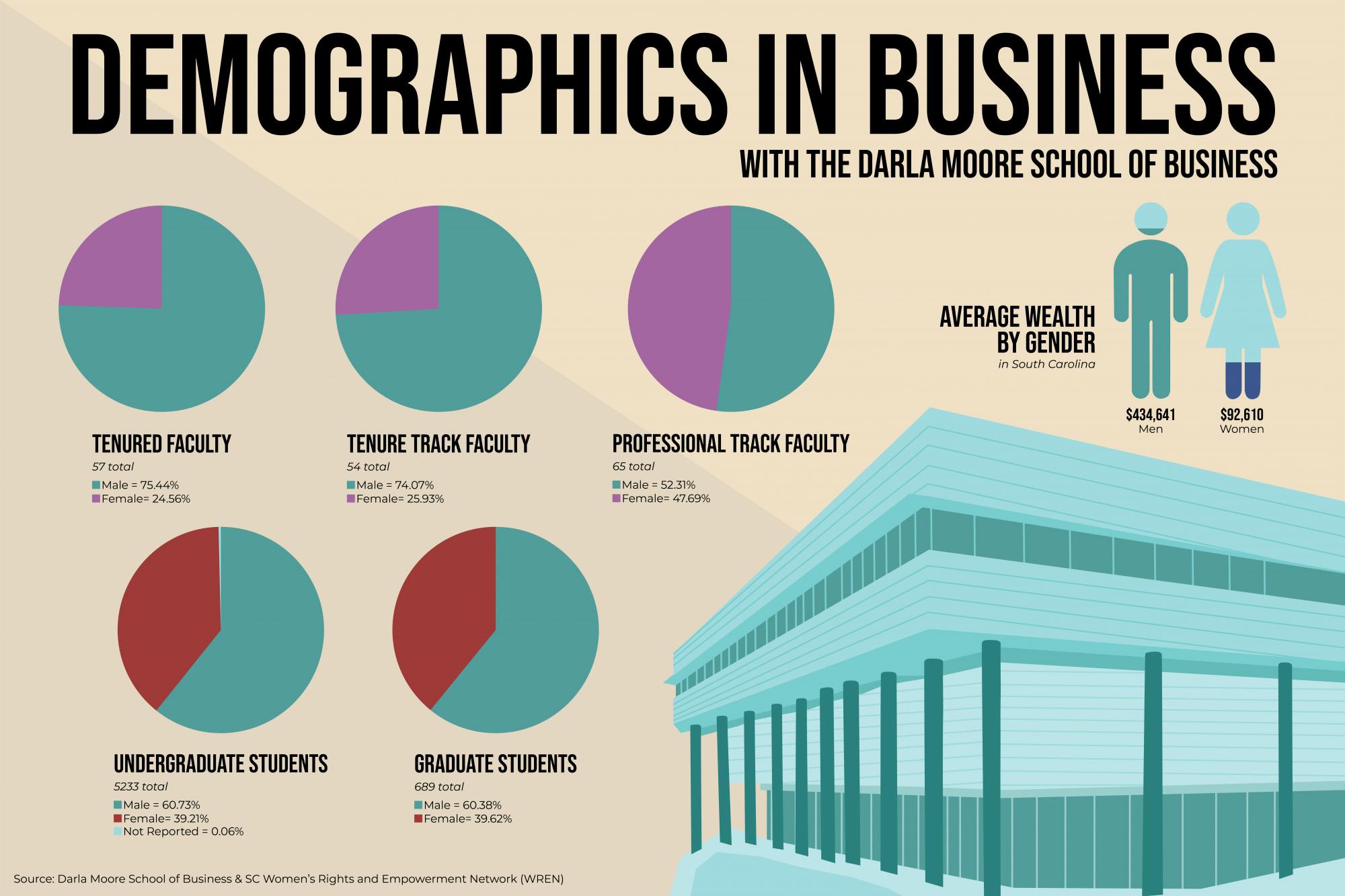 The world of business is a male-dominated industry, and the Darla Moore School of Business at USC is predominantly male. One study found that views on sexism against men are still a common element in MBA programs, and experts and industry professionals say this is a cause of bias and a lack of diversity in leadership.