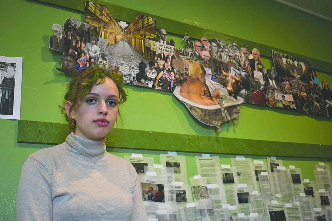 Sophie Angela uses her art showcase at Cool Beans to display a political message and encourage viewers to think about the role of politics in daily life.