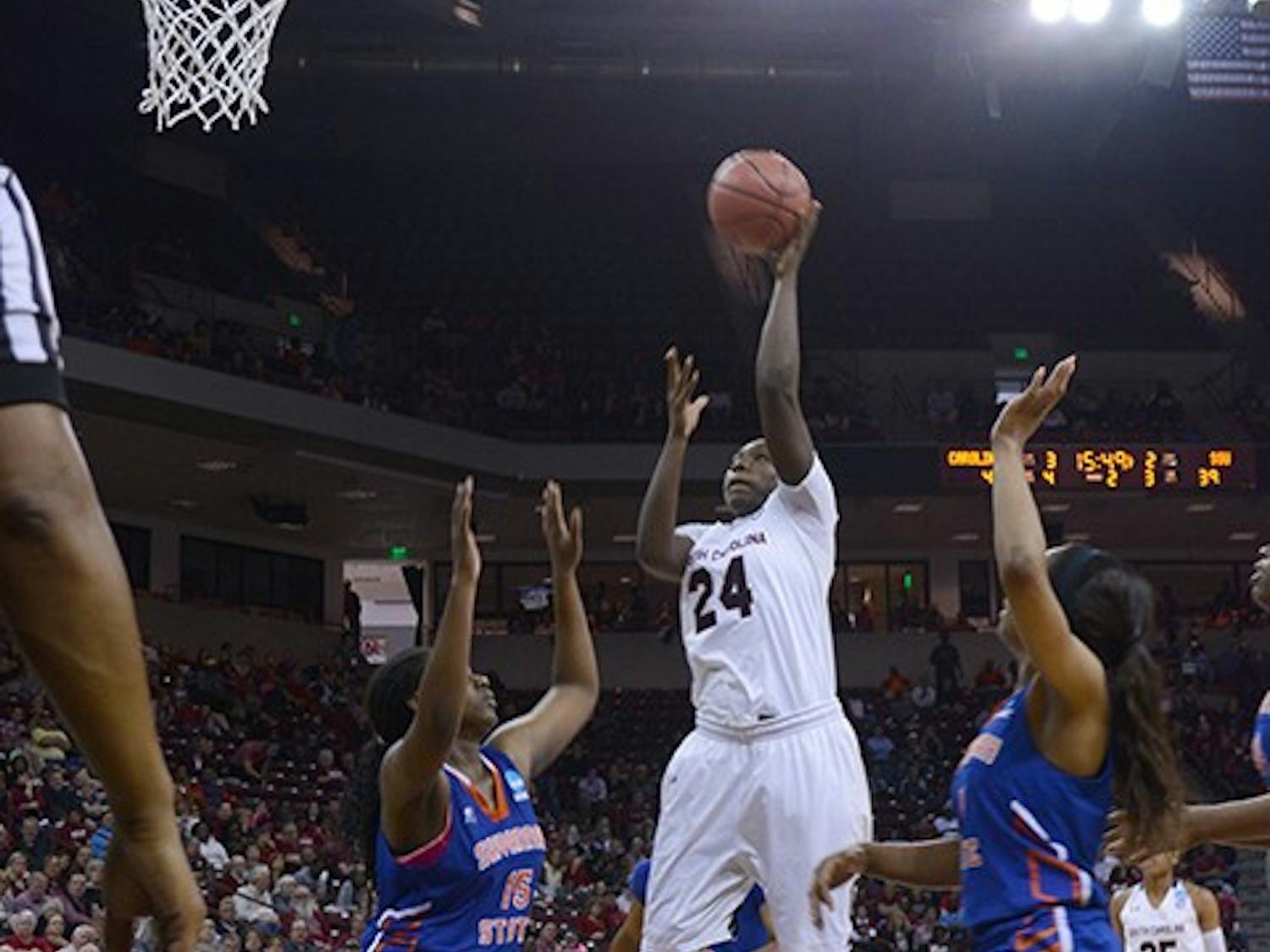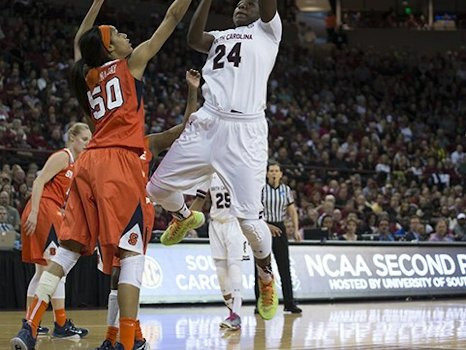 By brennan doherty | March 27, 2015In its biggest game of the year, top-seeded South Carolina turned to junior shooting guard Tiffany Mitchell, the two-time SEC player of the year, for the biggest bucket of the night to defeat fourth-seeded North Carolina 67-65 in the Sweet 16 on Friday.
