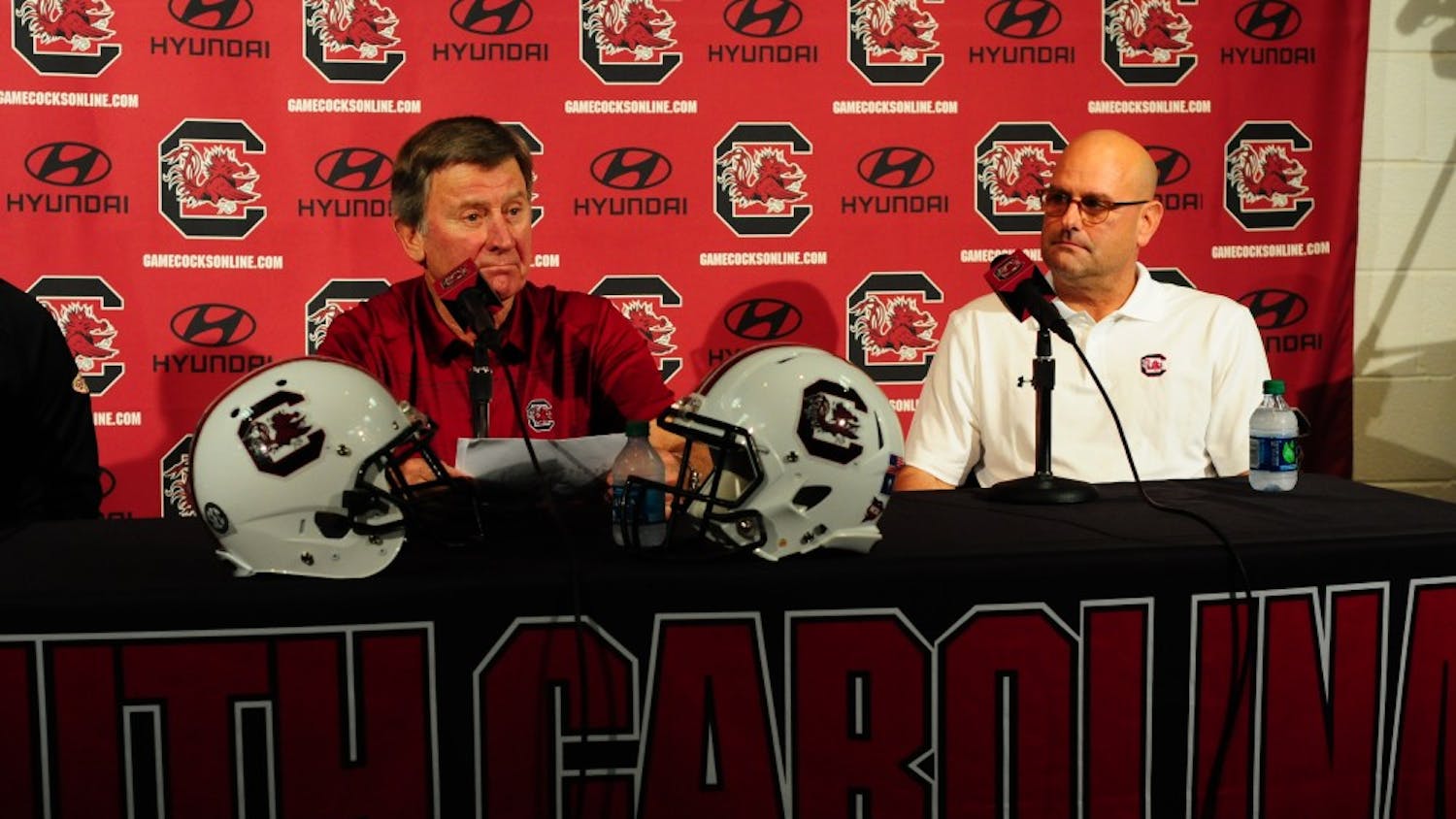 By brennan doherty | Feb. 9, 201530.4 points and 432.7 yards per game later, South Carolina has finally made plans to improve its defense in anticipation of the 2015 season. Gamecock head coach Steve Spurrier formally introduced Jon Hoke as one of South Carolina’s new co-defensive coordinators at a press conference on Monday, also noting that Lorenzo Ward, the Gamecocks’ defensive coordinator since 2009, will also work under the same title as Hoke. The University of South Carolina Board of Trustees approved the hire of Hoke Monday morning.