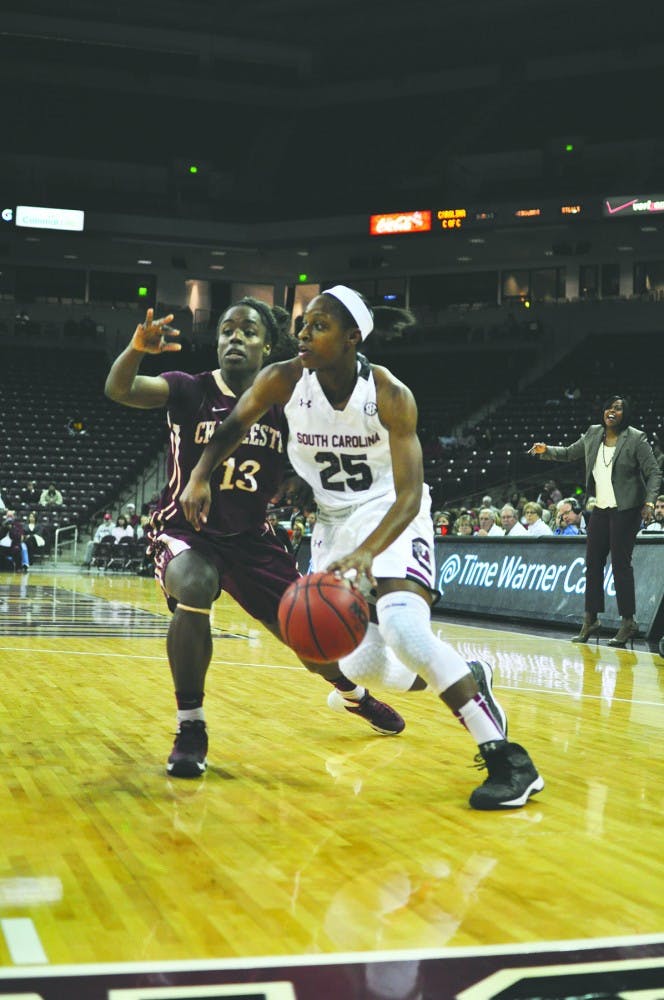 Sophomore guard Tiffany Mitchell hit two big shots in the final minute to help propel the No. 10 Gamecock women’s basketball team to a 61-57 victory against No. 16 Vanderbilt on Sunday.