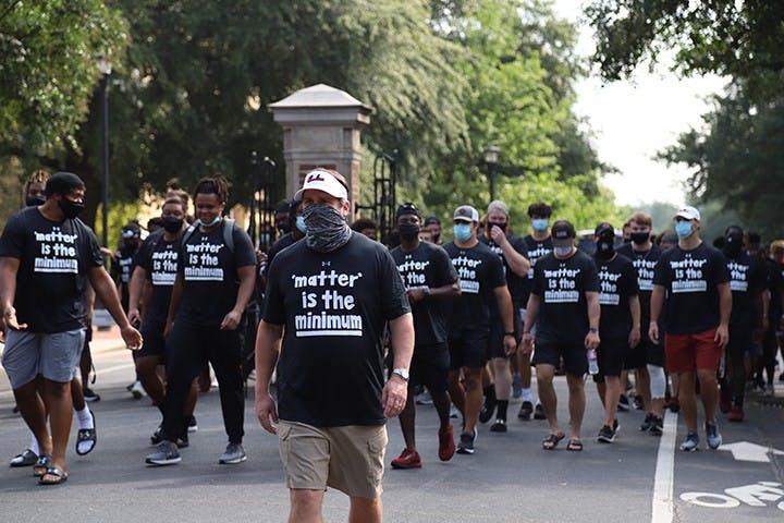 South Carolina's football team canceled all football activities Monday and participated in an on-campus demonstration for racial justice with the women's soccer team.