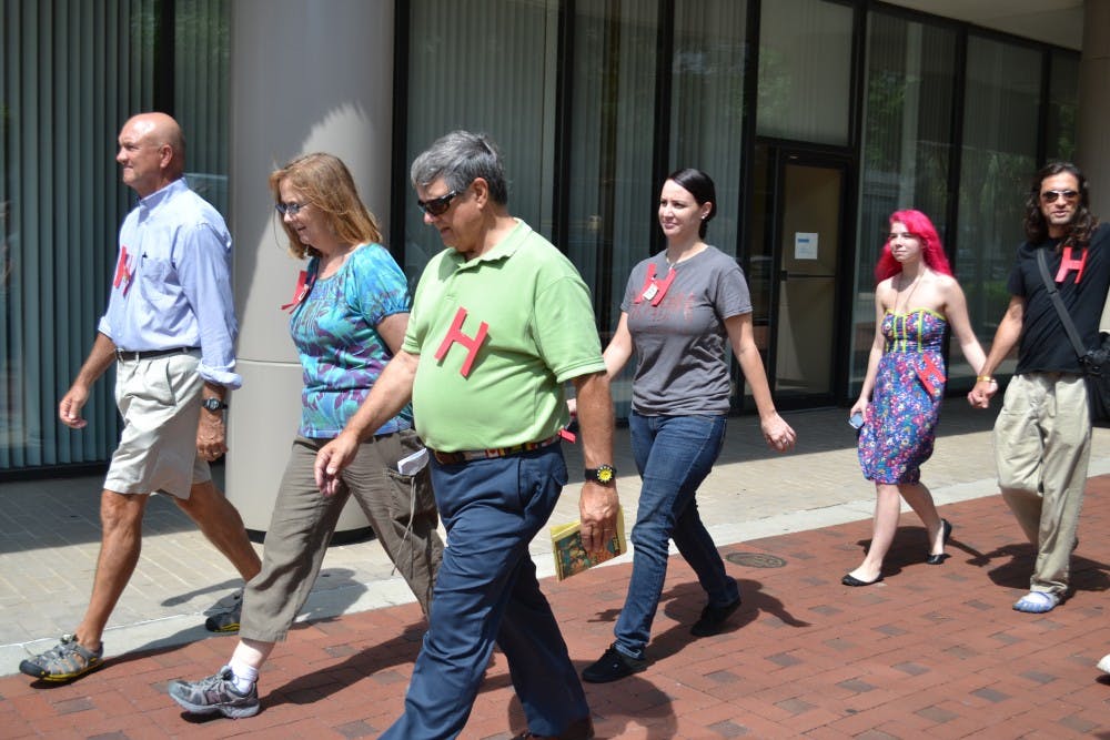 Braxton Towery and his wife, Shelley, of Carolina CRU and Greek Impact, led students in a time of prayer and scripture in support of Martha Childress, the victim of Sunday’s shooting.