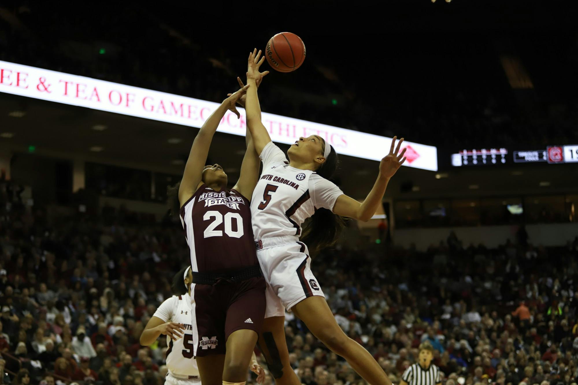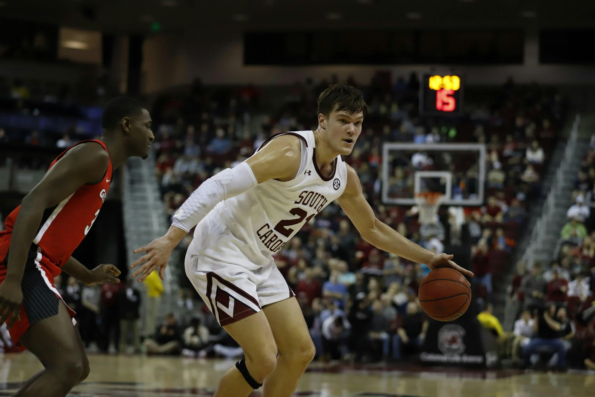 mbb haley-2.jpg By Haley Salvador / The Daily Gamecock | Nov. 6, 2019 Freshman Jalyn Mccreary goes up for a layup in the Gamecocks game against North Alabama on Wednesday night. Mccreary scored 9 points in the Gamecocks 77-55 win in this game