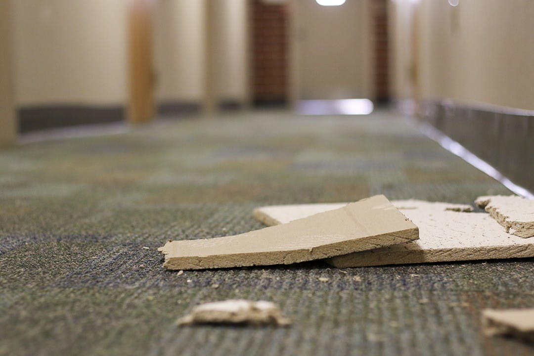 Students in Cliff Apartments ripped the elevator button out of the wall and are knocking tiles out of the ceiling.