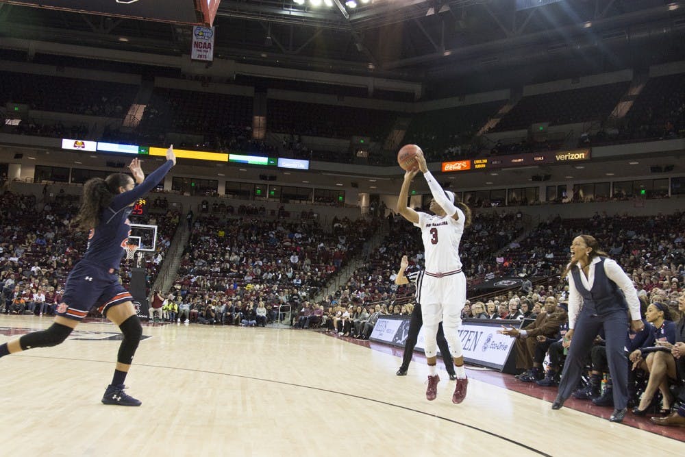 With A'ja Wilson's 17 points and Alaina Coates' 16 points, the No. 6 Lady Gamecocks rolled past Auburn at Colonial Life Arena on Thursday night.